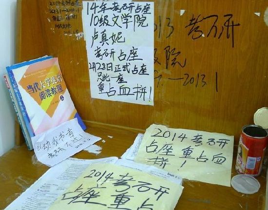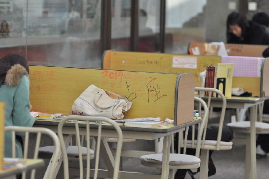 青島新聞網(wǎng)2月5日訊 今年,小品演員蔡明的“毒舌”給平淡無(wú)奇的春晚增添了一大亮點(diǎn)。昨天下午,記者在青島某高校的桌面上,看到備戰(zhàn)考研的學(xué)生們占座的標(biāo)語(yǔ),比起蔡明的“毒舌”來(lái),那是有過(guò)之而無(wú)不及呀。