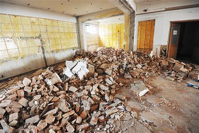 “這不是承重墻,這些柱子是承重的,這些墻是后來(lái)自己蓋上的,砸掉了不要緊。 ”工人給記者看了看已經(jīng)砸下來(lái)的磚墻,發(fā)現(xiàn)的確不是混凝土鋼筋結(jié)構(gòu)。