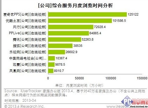 ????艾瑞IUT4月月度視頻網(wǎng)站最新統(tǒng)計(jì)數(shù)據(jù)出爐。綜合服務(wù)月度瀏覽總時(shí)間愛奇藝PPS、優(yōu)酷土豆合并之后綜合計(jì)算數(shù)據(jù),居第一、第二位,風(fēng)行網(wǎng)位列第三。人均月度瀏覽時(shí)間風(fēng)行網(wǎng)遙遙領(lǐng)先,遠(yuǎn)超排行第二的愛奇藝PPS,且是第四名優(yōu)酷土豆人均瀏覽時(shí)間的兩倍以上。