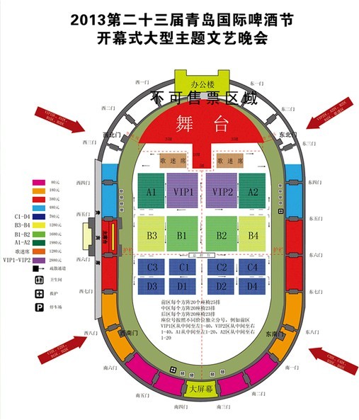 ??? 票價(jià)分為:VIP:2880元;歌迷席:1280元;內(nèi)場票為:1980元、1680元、1280元、780元、看臺票為:480元、380元、180元、80元。