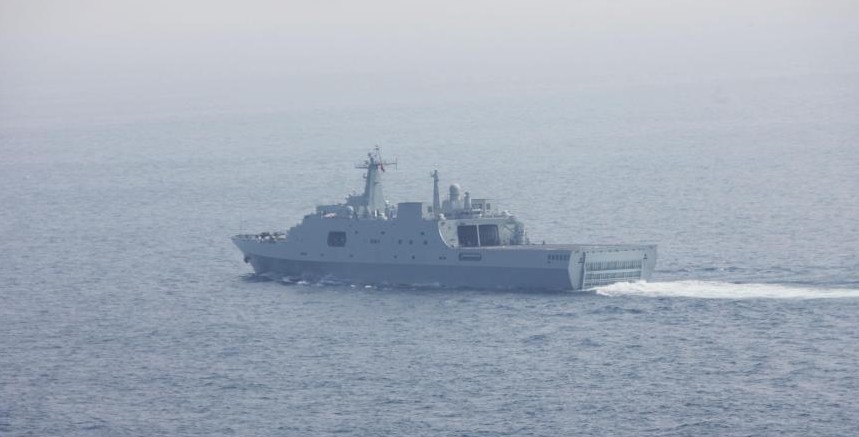 ????3月9日下午,井岡山艦在趕赴馬航航班失聯(lián)海域參與搜索救援的途中。經(jīng)中央軍委批準,中國海軍派出艦艇參加馬來西亞航空公司失聯(lián)航班救援行動。3月8日晚11時50分,正在南沙海域執(zhí)行任務的導彈護衛(wèi)艦綿陽艦奉命起航趕赴馬航航班失聯(lián)海域。9日凌晨3時,海軍兩棲登陸艦井岡山艦從湛江軍港緊急起航。(中新社發(fā) 尹海明 攝)