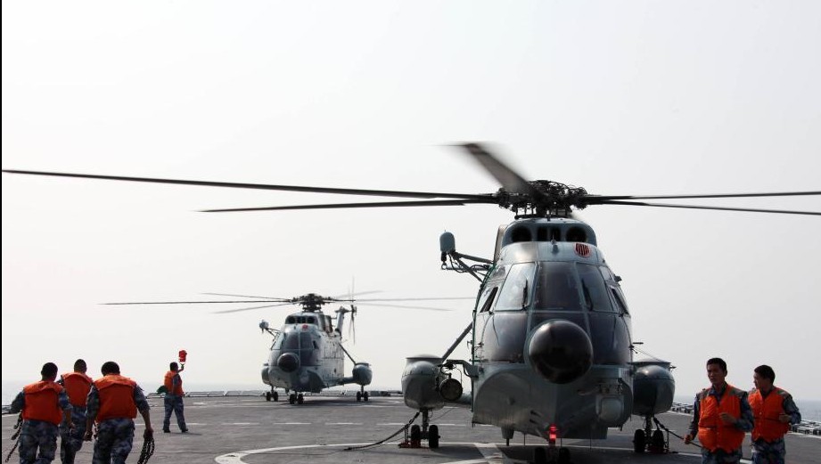 3月9日下午,兩架艦載直升機降落在井岡山艦上,將隨艦參與救援。