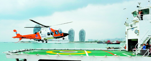 ????3月9日,中國海事直升機降落在“海巡31”船上。當日南海最大海巡船“海巡31”前往失聯(lián)航班疑似墜落海域搜救。