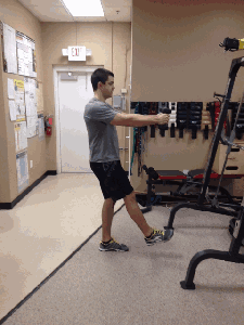 ????先來做單腿深蹲,它可以鍛煉你的核心肌群、臀肌、股四頭肌,以及腳踝和腳部用于維持穩(wěn)定的小型肌群(這些肌群經(jīng)常超負(fù)荷運(yùn)作)。剛開始鍛煉的時(shí)候,你可能只需要利用自身體重,再加上一條方便手抓的橫杠或椅子把手。在穩(wěn)定性和力量得到提高以后,再額外增加重量。
