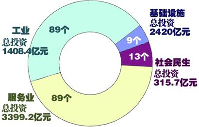????服務(wù)業(yè)領(lǐng)域的市級(jí)重點(diǎn)項(xiàng)目共有89個(gè),總投資3399.2億元,主要以金融、商貿(mào)、文化創(chuàng)意、現(xiàn)代物流、會(huì)展、科技信息、總部經(jīng)濟(jì)等領(lǐng)域高端服務(wù)業(yè)項(xiàng)目為主。其中,城市綜合體項(xiàng)目,包括海天中心、華潤(rùn)中心、綠城深藍(lán)中心、藍(lán)海新港城等項(xiàng)目,總投資都在100億元以上,項(xiàng)目建成后將提升城市綜合服務(wù)水平,打造青島新地標(biāo)??偛拷?jīng)濟(jì)項(xiàng)目,包括市北國(guó)際郵輪母港啟動(dòng)區(qū)項(xiàng)目,總投資30億元,規(guī)劃建設(shè)國(guó)際金融中心、總部大樓等,引入一批郵輪、港航、金融、物流等企業(yè)進(jìn)駐,帶動(dòng)投資600億元以上,加快建設(shè)“國(guó)際郵輪城”??萍夹畔㈨?xiàng)目,包括藍(lán)谷中科北大研發(fā)基地、中斗科技產(chǎn)業(yè)聯(lián)盟項(xiàng)目,總投資分別為24億元、10億元,立足世界海洋科研最前沿,建設(shè)國(guó)際先進(jìn)的海洋發(fā)展中心;高新區(qū)科創(chuàng)慧谷、青島網(wǎng)谷項(xiàng)目,總投資分別為106億元、100億元,聚集信息產(chǎn)業(yè)高新技術(shù)企業(yè),打造科技人文紅島新城。金融項(xiàng)目,包括嶗山青島環(huán)球金融中心、國(guó)信金融中心等項(xiàng)目,總投資分別為100億元、35億元,聚集金融、研發(fā)及總部企業(yè)。文化創(chuàng)意項(xiàng)目,包括黃島東方影都影視制作區(qū)二期項(xiàng)目,總投資100億元,規(guī)劃建設(shè)國(guó)際領(lǐng)先的影視產(chǎn)業(yè)基地。會(huì)展項(xiàng)目,包括黃島國(guó)際會(huì)議展覽中心、紅島國(guó)際會(huì)議展覽中心項(xiàng)目,總投資分別為120億元、48億元,新增展館面積超過(guò)50萬(wàn)平方米。物流項(xiàng)目,包括董家口鐵路物流園項(xiàng)目,總投資30億元,集運(yùn)儲(chǔ)、加工、信息等功能于一體,預(yù)計(jì)帶動(dòng)投資500億元以上,加速形成董家口新港城;濟(jì)鐵膠州物流園、京東電子商務(wù)產(chǎn)業(yè)園項(xiàng)目,總投資分別為50億元、20億元,充分發(fā)揮青島新機(jī)場(chǎng)物流集散優(yōu)勢(shì)。