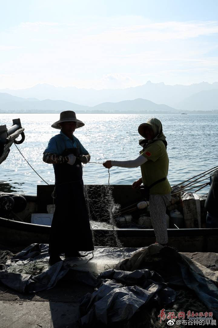 距本年度伏季休漁期結(jié)束僅余一周時間,漁民們開始進入修船補網(wǎng)階段。(圖/@布谷鐘的早晨)