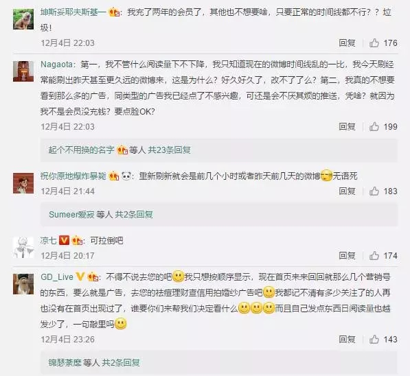 這讓微博開始有些坐不住,盡管在11月7日微博發(fā)布的三季度財(cái)報(bào)上,營收和凈利一路高歌,但之后的幾天,大量微博用戶,尤其是大V對微博改版后的吐槽,鋪天蓋地,即便到現(xiàn)在吐槽依然存在。