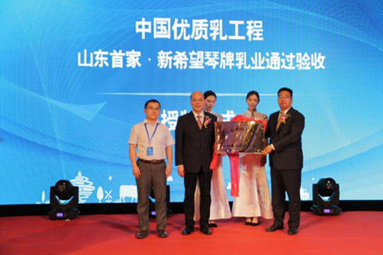 圖為:2017年5月,新希望琴牌獲優(yōu)質(zhì)乳工程驗(yàn)收發(fā)布會(huì)現(xiàn)場