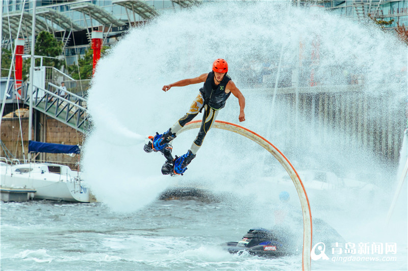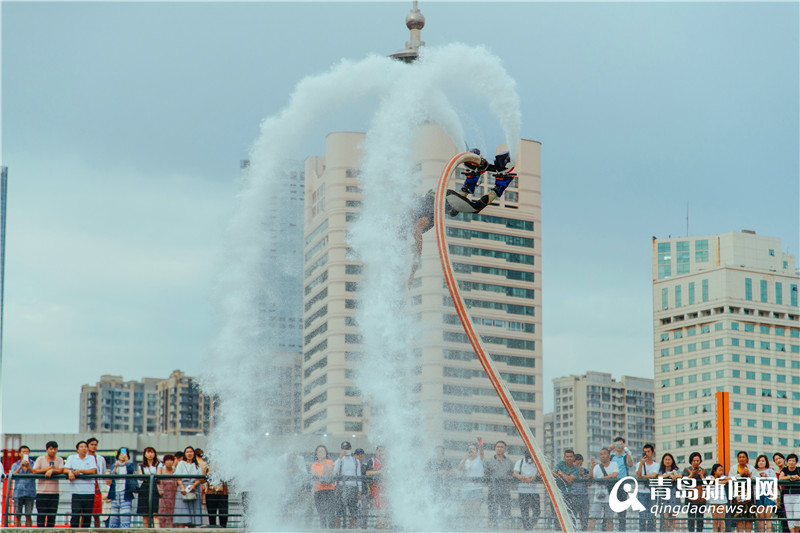 水上飛人表演吸引市民駐足觀(guān)看。