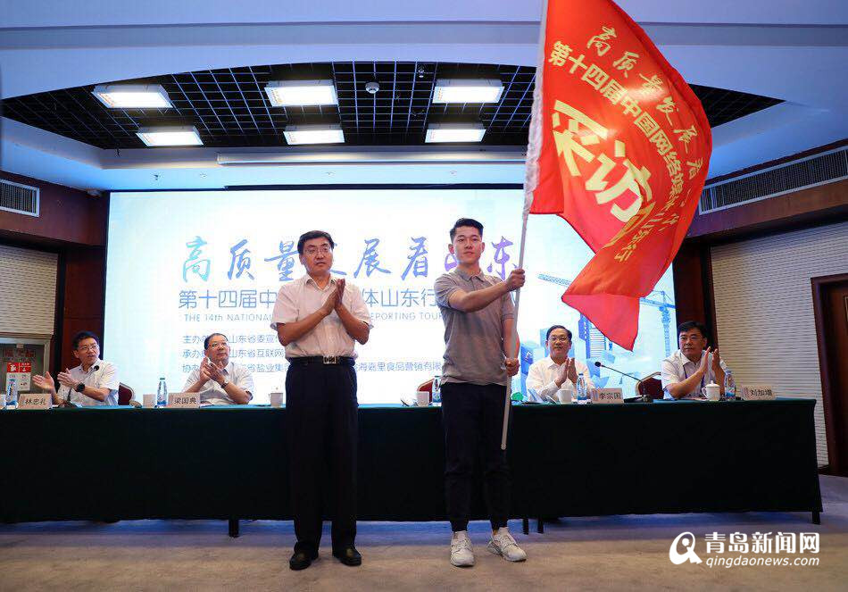啟動儀式上,中共山東省委宣傳部常務(wù)副部長王紅勇為采訪團(tuán)授旗,采訪團(tuán)成員代表人民日報社新媒體中心溫騰接旗,“高質(zhì)量發(fā)展看山東——第十四屆中國網(wǎng)絡(luò)媒體山東行”大型采訪活動正式啟動。
