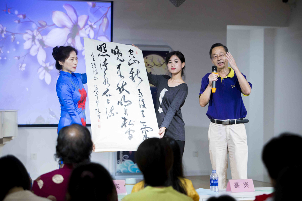 當(dāng)晚,青島國學(xué)會會長張文、禪院院長張川、書法家孫綱老師也親臨現(xiàn)場,以筆代心,為大家書寫美好祝福,并送給現(xiàn)場幸運觀眾。在詩會的互動環(huán)節(jié)中,青島市首屆詩詞高手冠軍胡鵬、2018青島“漢風(fēng)國韻”詩詞大會“詩王”侯英喜、殷瑞璟等老師,現(xiàn)場為大家普及“飛花令”傳統(tǒng)文化知識,和大家共同體驗“飛花令”的樂趣。