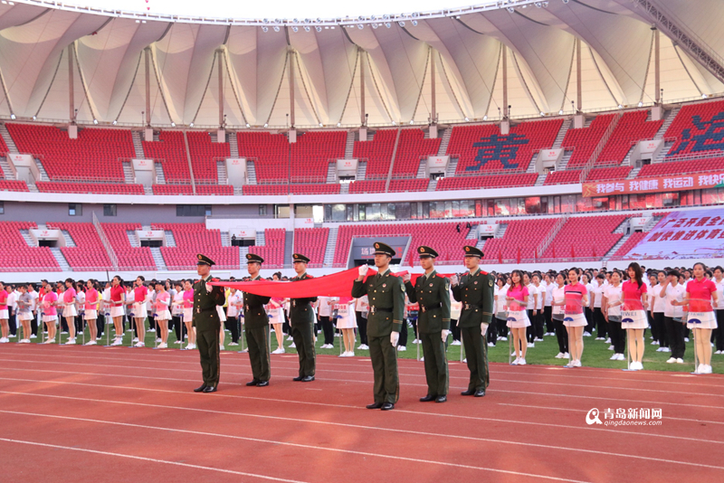 在運動員進行曲中,49支隊伍的1850名裁判員、運動員在國旗隊的前導下,邁著整齊的步伐入場,展示出了嶗山區(qū)各行各業(yè)職工奮發(fā)向上、團結進取的精神風貌,以及干事創(chuàng)業(yè)的熱情和創(chuàng)造活力。