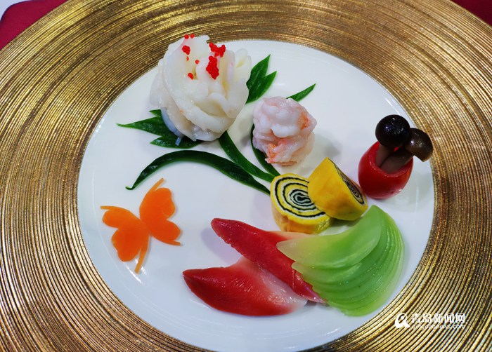 除于德榮的孔府焦溜魚(yú)外,同為青島上合峰會(huì)國(guó)宴主會(huì)場(chǎng)大廚的龍宇航同樣帶來(lái)了其拿手好菜——花開(kāi)富貴,將海鮮美食用精湛刀工,通過(guò)牡丹花的形態(tài)呈現(xiàn)出來(lái)。