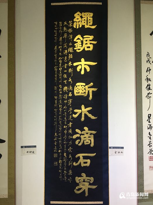 青島新聞網(wǎng)11月12日訊(記者 王超)為慶祝中國(guó)改革開(kāi)放四十周年、中韓兩國(guó)建交二十六周年,由青島市嶗山區(qū)文化新聞出版局和(社團(tuán)法人)韓國(guó)書(shū)法家協(xié)會(huì)暨仁川廣域市支會(huì)主辦,嶗山美術(shù)館與青島吉金堂美術(shù)館承辦的“2018中韓書(shū)畫(huà)國(guó)際交流展”11月10日下午三點(diǎn)在嶗山美術(shù)館拉開(kāi)帷幕,對(duì)外展出至11月16日。