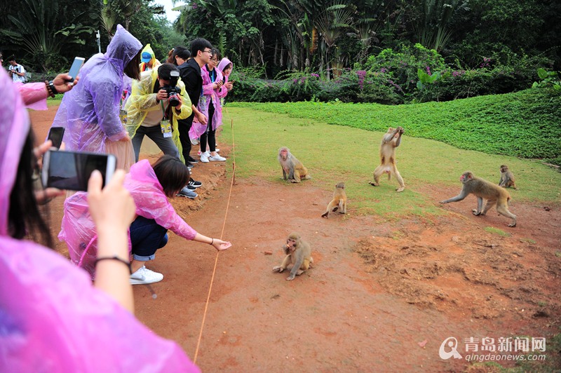 剛進(jìn)入步行區(qū),一座近40畝人造猴山出現(xiàn)在網(wǎng)媒記者面前,這里居住著將近300只獼猴。在這里,網(wǎng)媒記者不僅可以近距離喂養(yǎng)它們,也可以與其互動(dòng)玩耍,猴子們?cè)谏砬版覒蛲嫠?,抓耳撓腮、上躥下跳、機(jī)靈可愛的樣子很討記者們歡喜。