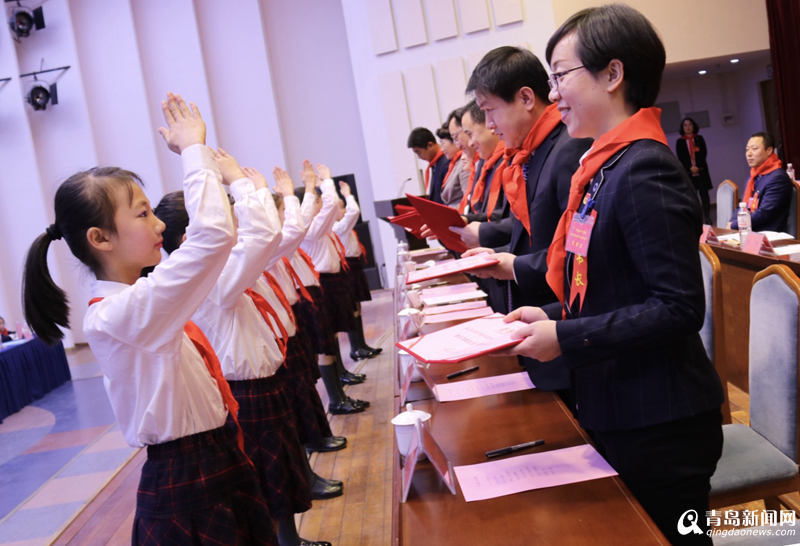 區(qū)總工會(huì)常務(wù)副主席王鵬海代表群團(tuán)組織向大會(huì)致祝詞;團(tuán)區(qū)委副書記高潔代表中國少年先鋒隊(duì)青島市嶗山區(qū)第九屆工作委員會(huì)向大會(huì)作了題為《高舉隊(duì)旗跟黨走肩負(fù)使命共奮進(jìn)》的工作報(bào)告;團(tuán)市委副書記、市少工委主任張宇代表市少工委向大會(huì)賀詞。