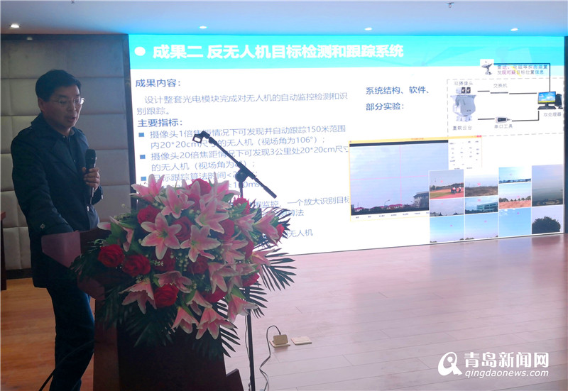 中國石油大學(xué)(華東)電子信息工程系副教授宋華軍博士介紹了實時目標(biāo)跟蹤系統(tǒng)、高性能硬件系統(tǒng)設(shè)計、智能視頻處理算法和軟件設(shè)計等技術(shù)在生產(chǎn)生活中的應(yīng)用?!拔覀冄邪l(fā)設(shè)計了整套光電模塊完成對無人機的自動監(jiān)控檢測和識別跟蹤。”宋華軍說,攝像頭1倍焦距情況下可發(fā)現(xiàn)并自動跟蹤150米范圍內(nèi)的無人機;攝像頭20倍焦距情況下可發(fā)現(xiàn)3公里處的無人機;通過使用雙攝像頭,一個大范圍監(jiān)控,一個放大識別目標(biāo),通過新高效低空弱小目標(biāo)自動檢測算法和基于尺度的實時目標(biāo)跟蹤算法,使用改進的深度學(xué)習(xí)方法精確識別無人機。