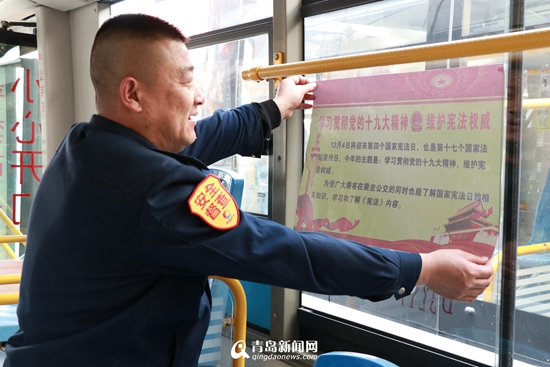 130路駕駛員唐永綱向記者介紹,這次主題車廂是采用網(wǎng)狀材質(zhì),將憲法宣傳圖貼在公交車玻璃上,既不妨礙乘客視線,又能起到宣傳作用,內(nèi)容主要圍繞“忠于憲法,維護憲法權(quán)威,履行法定職責(zé),忠于祖國,恪盡職守”。另外,130路線駕駛員還向市民發(fā)放《憲法》宣傳冊,宣傳法律是時時刻刻與老百姓相關(guān)的法律意識,收到乘客好評。乘客李女士表示,今天乘坐公交車才知道是憲法宣傳日,確實給自己上了一課,自己會認真學(xué)習(xí)憲法知識。