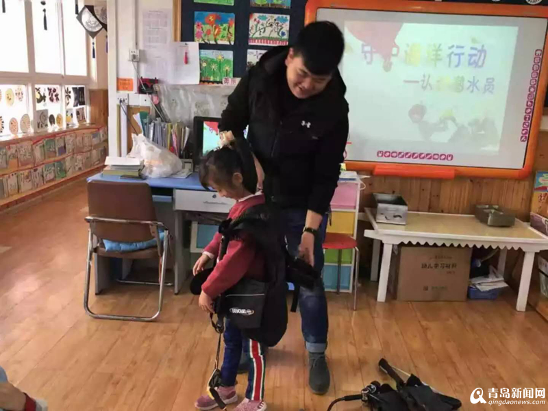 活動中,潛水員叔叔利用實物向小朋友們介紹了潛水員的裝備,認(rèn)識了潛水鏡、潛水服、潛水的腳蹼和呼吸管,結(jié)合圖片講解了潛水員的日常工作。小朋友們興奮地穿上了潛水服和腳蹼,在模仿體驗中感受到潛水員叔叔工作的辛苦、專業(yè)、責(zé)任心和團隊合作精神,感受到了保護海洋的重要性。