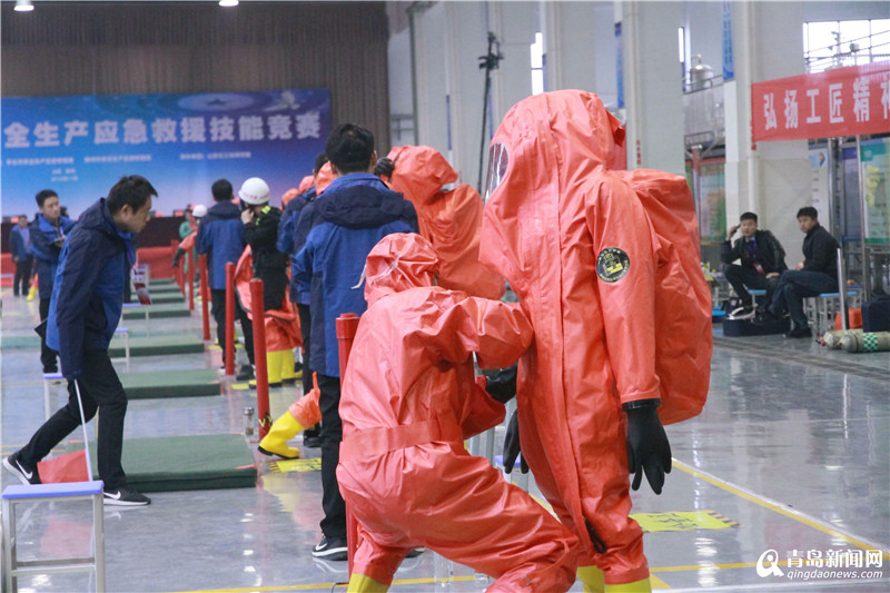 在競賽過程中,青島市安監(jiān)局局長、市應急辦主任張建剛專程到比賽現(xiàn)場指導工作,鼓舞士氣。全體隊員克服各種困難,齊心協(xié)力,團結一致,在為期3天的競賽時間內完成了理論考試、濾毒罐項目、正壓式空氣呼吸器、致密性化學防護服4個科目的比拼。隊員們頑強拼搏、團結協(xié)作,賽出風格、賽出水平,展現(xiàn)了全市企業(yè)一線員工的良好精神風貌。