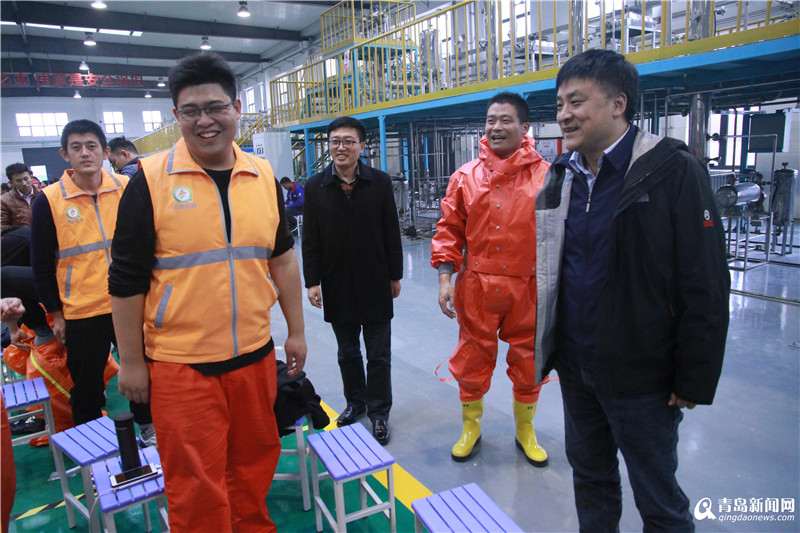 青島市安監(jiān)局局長、市應急辦主任張建剛去競賽現(xiàn)場指導工作并鼓舞士氣。