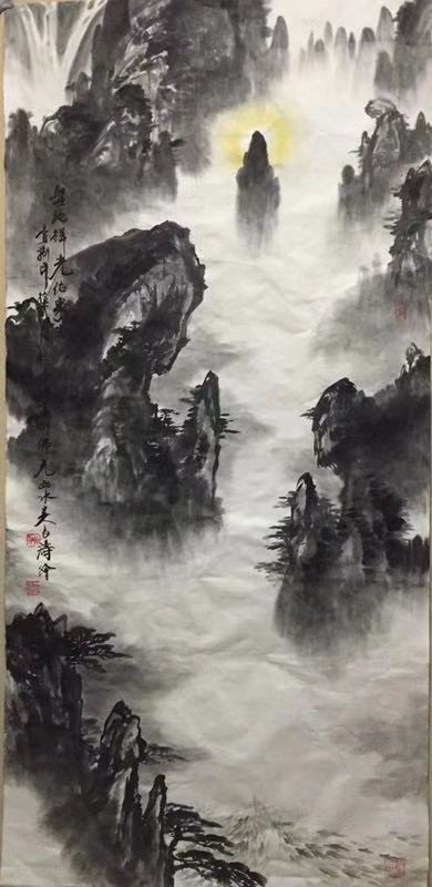 本次展覽將展出吳良濤先生近年來創(chuàng)作的四十余幅作品,其中魚畫占絕大多數(shù),同時也包括吳先生游歷峨眉巧遇佛光時頓悟創(chuàng)新的四幅“祥光山水”處女作!這是畫家構(gòu)思己久、反復(fù)研討、論證、實(shí)踐,又結(jié)合東晉鴆摩羅什弟子道生大師在蘇州虎丘講經(jīng)使頑石點(diǎn)頭的典故畫出的“祥光水畫”。原先吳先生將自己首創(chuàng)的山水畫命名為“佛光山水",但考慮到因?yàn)樽诮绦叛?、文化不同,如佛教稱“佛光普照”、道教有“紫氣東來”、媽祖文化有“指引救難神光”、基督教稱“圣靈之光”等,故將自己的山水畫命名為“祥光山水”。本次展覽的四幅“祥光山水”畫作品均為畫家首創(chuàng)處女作”,可以說是開一代山水畫的新路!