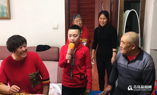 小弟弟拿著藍(lán)牙麥克風(fēng),為大家表演節(jié)目。