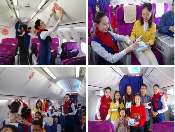 2019年2月7日,山航客艙部青島大隊(duì)宋勝男(宮欣,丁璐,王曉宇,李雪8,魏凱)魯雁乘務(wù)組在SC4681航班上開展了“春節(jié)春雨春花艷,新年新歲新日紅”機(jī)上特色活動(dòng),為乘坐山航航班的旅客營(yíng)造了一個(gè)喜慶溫馨的新春佳節(jié)。