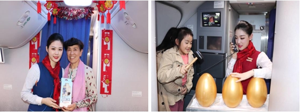 乘務(wù)組開展了“好運(yùn)驚喜金花四射”活動(dòng),抽取幸運(yùn)旅客上前砸金蛋,旅客滿懷期待卯足了勁將金蛋打開,笑容溢于言表。幸運(yùn)旅客劉先生表示:“大概有一年沒回家了,說起來很慚愧,工作忙,家又遠(yuǎn),今年父母正式退休了,終于有機(jī)會(huì)帶二老出門旅游,很感謝山航準(zhǔn)備的精美禮品,很驚喜,很貼心?!?/p>