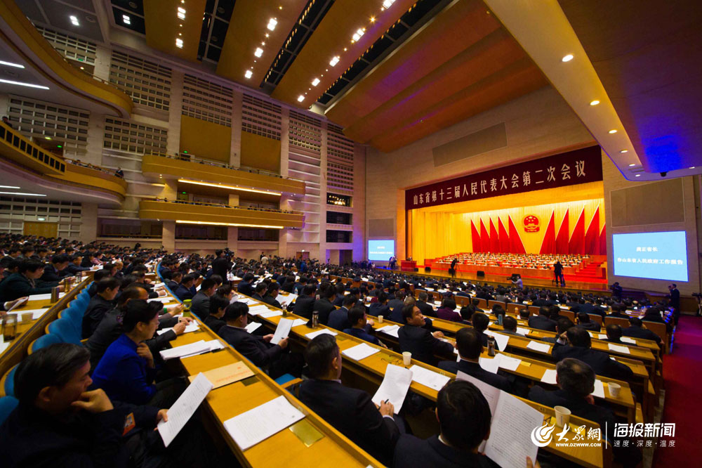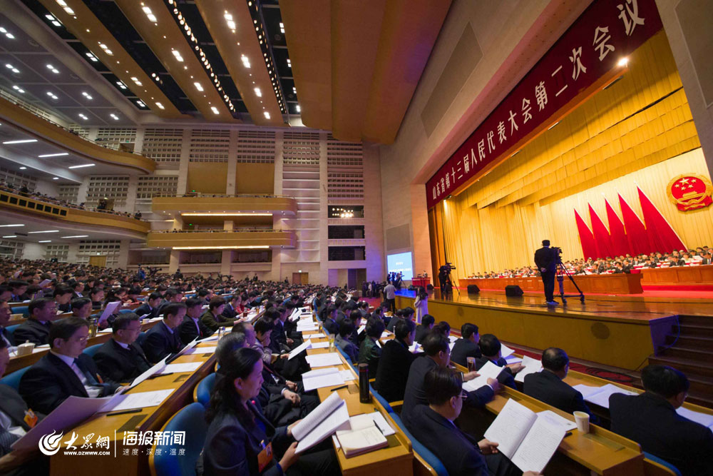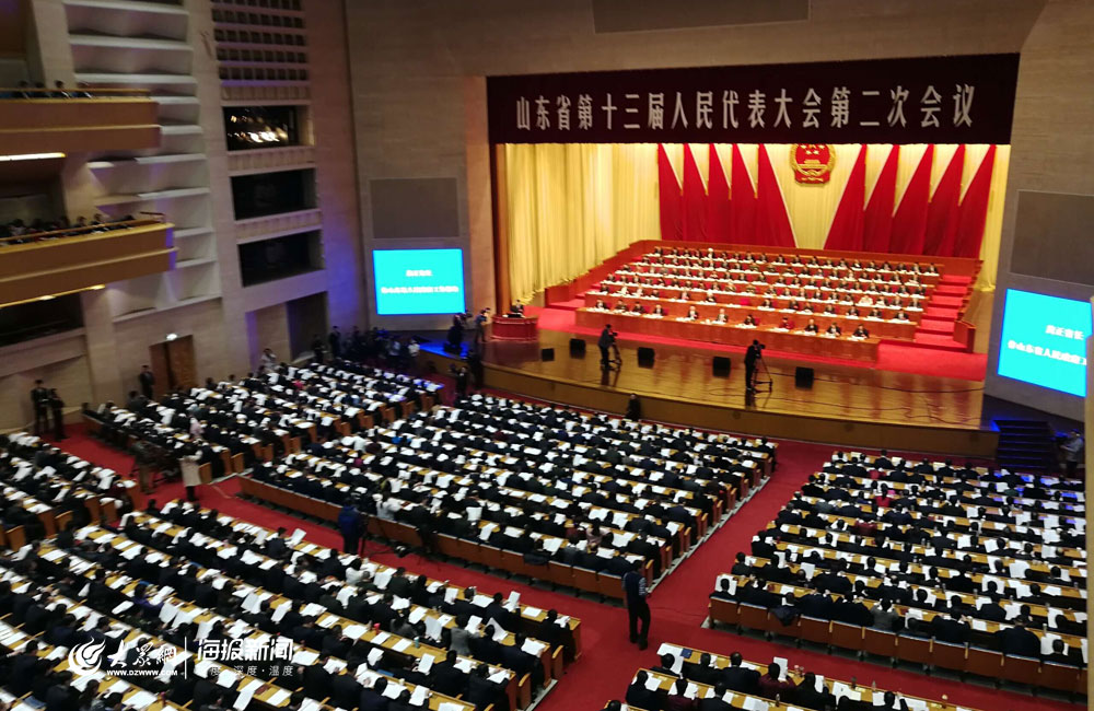 14日上午9時,山東省十三屆人大二次會議在濟南山東會堂舉行開幕會議。