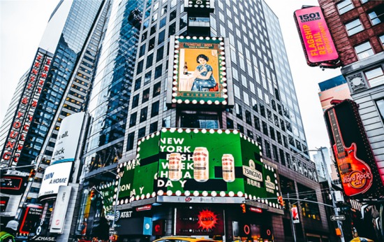 這場中國文化的潮牌熱度,也從紐約時裝周中國日秀場延伸到整座城市。在紐約時代廣場,變化炫目的青島啤酒經(jīng)典1903復(fù)古罐與時尚優(yōu)雅老廣告畫,引發(fā)著非常高的回頭率。而在此次紐約時裝周中國日潮服發(fā)布之后,青島啤酒潮服受到了眾多紐約年輕人的喜愛和追捧,限量復(fù)古罐產(chǎn)品和走秀款時裝的限時發(fā)布,更在紐約街頭引起了民眾排隊追售。