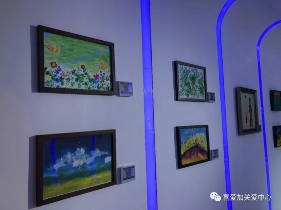 喜愛加關(guān)愛中心的自閉癥孩子們,用他們的畫筆,為我們描繪著他們五彩斑斕的世界,他們的星星天空,他們的海洋天堂。