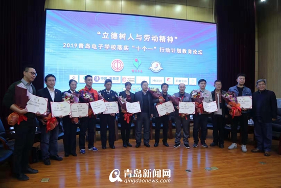 本次論壇的主題是“立德樹人與勞動精神”。論壇由青島電子學校副校長唐好勇主持。出席論壇的嘉賓有青島市總工會生產(chǎn)保護部王萍、青島市教育局思政與德育處王新剛處長、青島港務局郭磊、青島公交集團王艷、青島中車股份有限公司劉建樹,團島航標王炳交、青島卷煙廠王彬、海爾冰箱中一互聯(lián)工廠崔惠峰、青島國際經(jīng)濟技術(shù)合作有限公司牟曉琦、青島哈恪制片文化傳播有限公司趙宗俊、平度云山鎮(zhèn)張戈莊村愛農(nóng)基地張國才以及合作企業(yè)代表、優(yōu)秀畢業(yè)生代表、家長代表、師生代表及各大媒體代表。