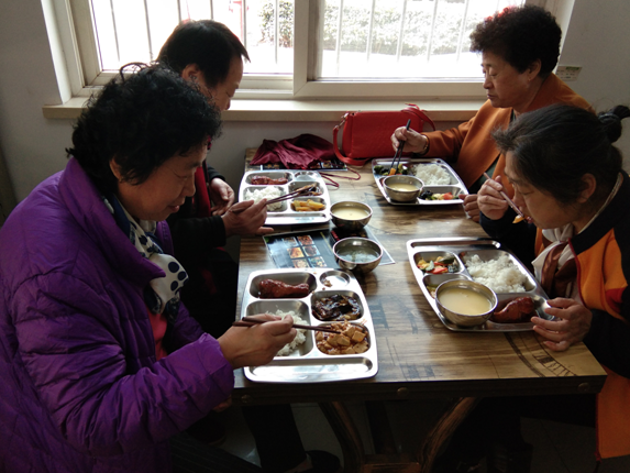 日間照料中心為社區(qū)65歲及以上老人提供十元午餐,食材選擇健康安全,菜品口味新鮮清淡。如果老人行動(dòng)不便,照料中心可送飯到家。