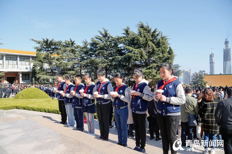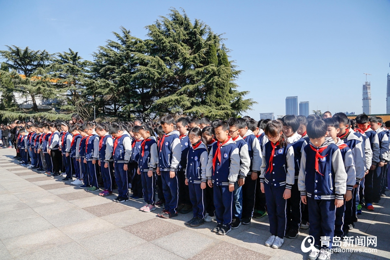 悼念儀式開始,師生們?nèi)w肅立,向先烈默哀一分鐘,這是無言的緬懷,也是崇高的致敬。默哀結(jié)束后,革命烈士紀(jì)念館工作人員為大家進(jìn)行了總講,簡明扼要地敘述了青島革命先烈的光輝事跡。