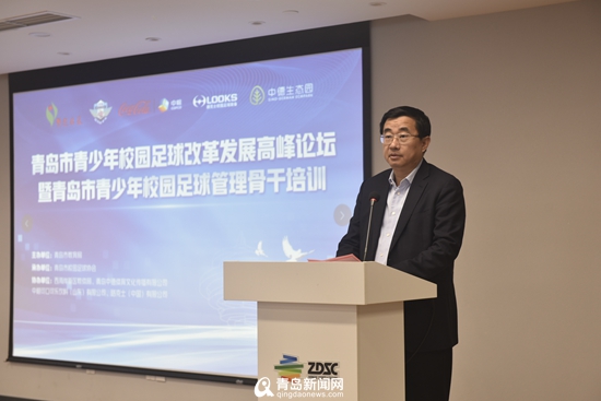 在下午的論壇中,青島財(cái)經(jīng)職業(yè)學(xué)校校長(zhǎng)蘭明傳、膠州中云振華教育總校校長(zhǎng)姜秀山作經(jīng)驗(yàn)分享。青島市教育局副處長(zhǎng)、三級(jí)調(diào)研員隋世宇布置安排2019年青島市校園足球推進(jìn)工作。