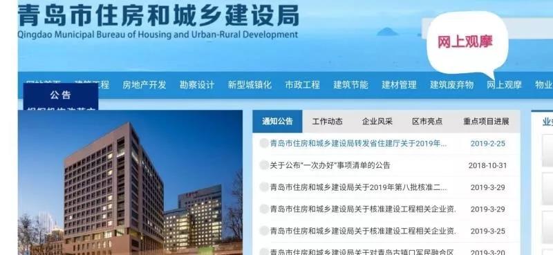 青島新聞網(wǎng)4月8日訊(記者 朱穎)為推動住宅工程“滲漏、開裂“專項治理“兩大行動”攻堅戰(zhàn)落實,擴大現(xiàn)場觀摩會效果,保持工作連貫性。日前,住宅工程“滲漏、開裂”專項治理“兩大行動”網(wǎng)上觀摩已在市住房城鄉(xiāng)建設(shè)局官網(wǎng)上線。