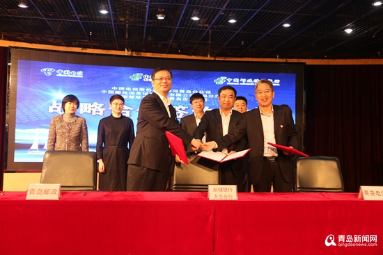 青島新聞網(wǎng)4月18日訊(記者崔文靜)今天,中國電信股份有限公司青島分公司、中國郵政儲(chǔ)蓄銀行股份有限公司青島分行、中國郵政集團(tuán)公司青島市分公司三方簽署戰(zhàn)略合作協(xié)議。