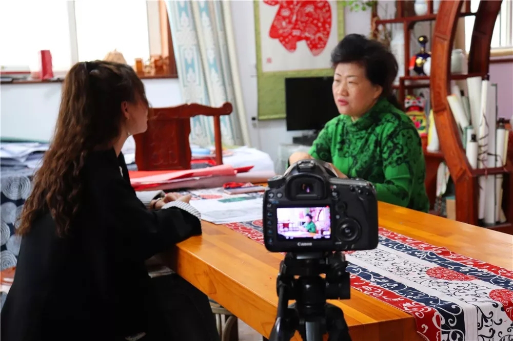 自媒體聯(lián)盟成員認(rèn)真學(xué)習(xí)剪紙過(guò)程