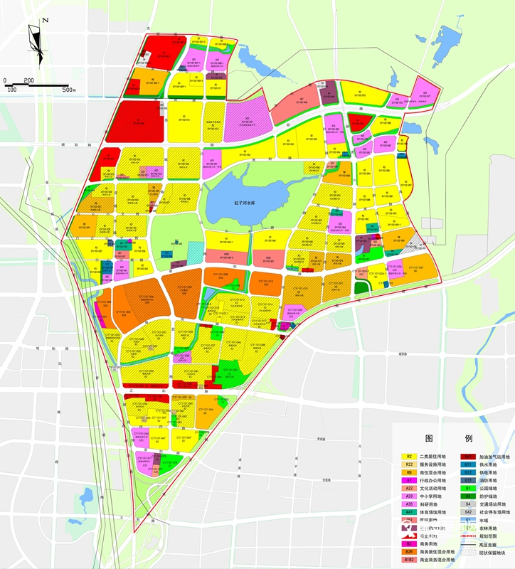 此外,在規(guī)劃結(jié)構(gòu)上將形成“三軸、三心、九組團”的空間布局結(jié)構(gòu)。其中,“三軸”是指正陽路公共服務(wù)發(fā)展軸和春陽路區(qū)級城市發(fā)展軸和碩陽路區(qū)級交通軸?!叭摹笔侵复宏柭罚缱雍又苓厔?chuàng)新產(chǎn)業(yè)中心;虹子河水庫生態(tài)景觀中心;青威路東側(cè)商業(yè)商貿(mào)中心?!熬沤M團”是指結(jié)合主要路網(wǎng)骨架形成5個居住組團、2個創(chuàng)新產(chǎn)業(yè)組團、1個商業(yè)商貿(mào)組團和1個生態(tài)休閑組團。