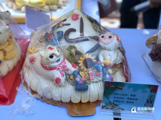 比賽現(xiàn)場(chǎng)設(shè)置有花餑餑展示區(qū),記者看到花餑餑作品手工精致、造型各異,萊西風(fēng)光、建國(guó)70周年、祝壽、婚慶等主題鮮明、創(chuàng)意非凡。據(jù)青島市婦聯(lián)主席方妍介紹,本次大賽二等獎(jiǎng)獲得者馬秀娥,在四年前還是個(gè)為生計(jì)發(fā)愁的待業(yè)人員,現(xiàn)在不僅把萊西花餑餑做成品牌,還獲得萊西市非物質(zhì)文化遺產(chǎn)稱(chēng)號(hào),同時(shí)帶領(lǐng)婦女姐妹們就業(yè)致富。據(jù)了解,像一等獎(jiǎng)作品“福祿一生”這款花餑餑,目前市場(chǎng)價(jià)為398元,可見(jiàn)花餑餑不僅好吃又好看,經(jīng)濟(jì)效益也非??捎^。