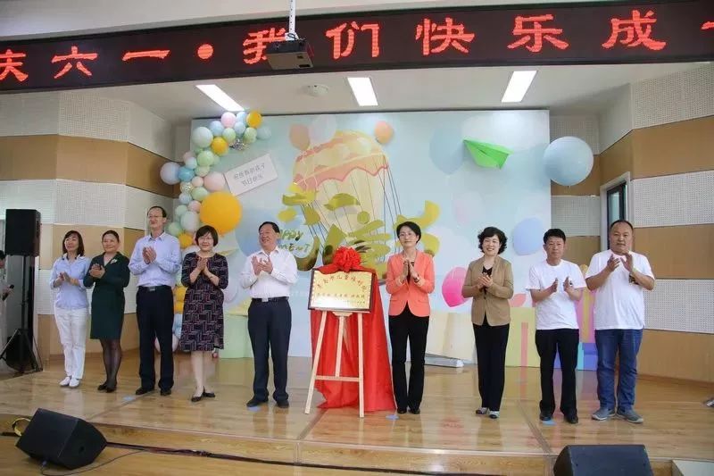 活動(dòng)中,領(lǐng)導(dǎo)們?yōu)楦@盒吗B(yǎng)育樓揭牌,市婦聯(lián)為孩子們送上了1萬元愛心關(guān)愛款。