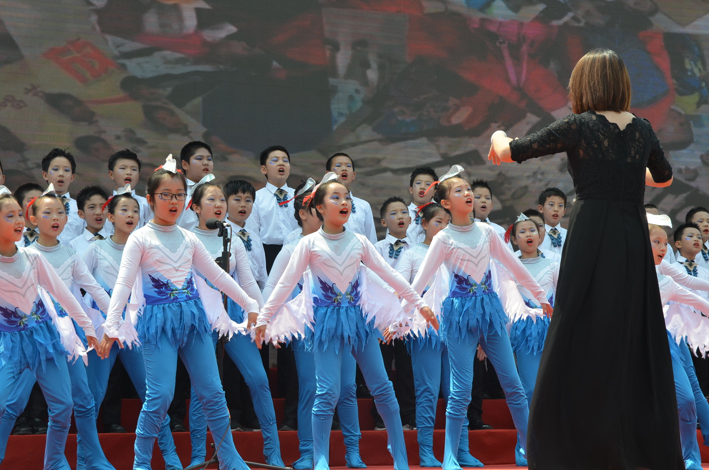 “我和我的祖國一刻也不能分割,無論我走到哪里都流出一首贊歌……”最后,在全校師生齊唱中,結(jié)束了今天的活動。