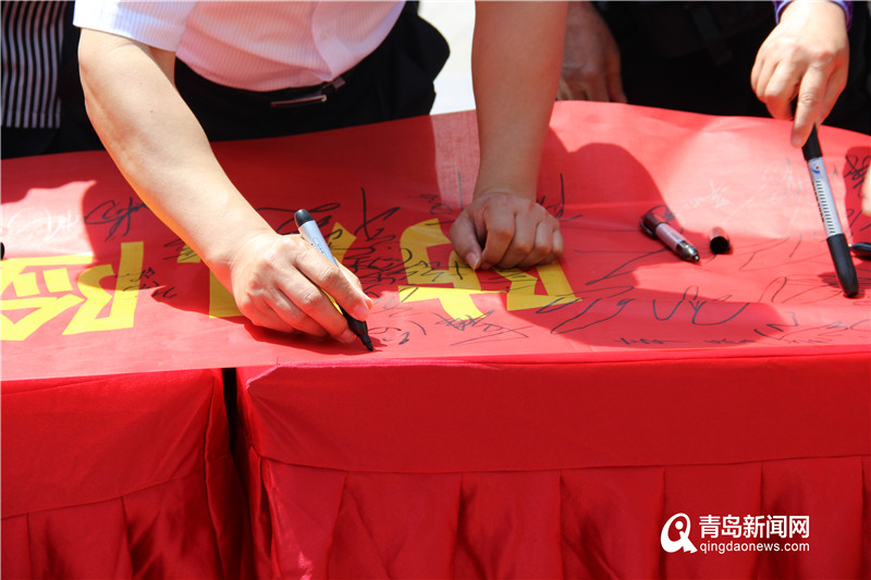 此外在妙趣橫生的安全文藝小演出期間,穿插進行“安全知識知多少”有獎?chuàng)尨?。發(fā)放《安全生產(chǎn)法》、《安全知識手冊》、《市南區(qū)居民安全常識十個要牢記》、《防災(zāi)減災(zāi)從我做起》、《燃氣安全須知》等安全法規(guī)及安全相關(guān)宣傳品2000余份。參與活動人員在活動主題橫幅上進行了爭做安全衛(wèi)士簽名。