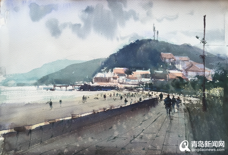7月中旬的嶗山,海天之間蒙著一層淡淡的霧氣,像一幅美麗的水彩畫,國內外水彩藝術家置身其間,以畫家的目光審視自然之美,用水彩描繪山海的別樣風情。山的奇秀、海的壯闊、漁村的靜謐,在水彩的流動中盡得表達,嶗山氣勢磅礴的景色躍然紙上。