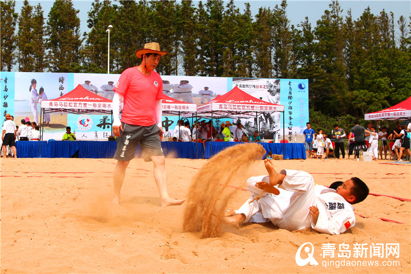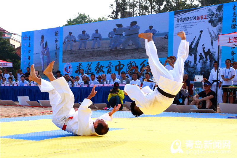 青島新聞網(wǎng)7月22日訊 (記者 劉文超)中國柔道協(xié)會(huì)柔道教育中國行山東青島站、“嶗山礦泉杯”第六屆青島沙灘柔道賽及“潤天豐杯”第三屆青島國際沙灘跆拳道公開賽在青島第三海水浴場同時(shí)舉行。27個(gè)代表隊(duì)300余名運(yùn)動(dòng)員組成的柔道賽隊(duì)伍和29個(gè)代表隊(duì)500余名運(yùn)動(dòng)員組成的跆拳道隊(duì)伍使第三海水浴場熱鬧非凡,激烈的比賽使這個(gè)夏天充滿激情與活力。