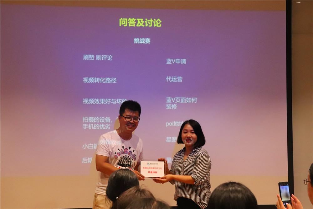 青島市自媒體聯(lián)盟為李世東頒發(fā)講師牌