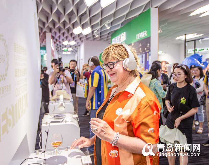 嘉賓通過耳機聆聽來自啤酒節(jié)現(xiàn)場的聲音。