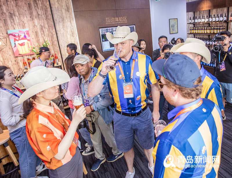 嘉賓在互動體驗區(qū)品嘗啤酒。