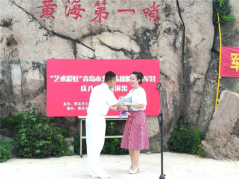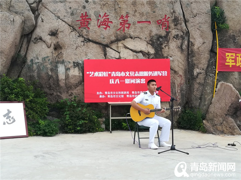 青島市文化館精心組織的由文化館業(yè)務(wù)骨干、優(yōu)秀文化志愿者以及部隊(duì)官兵共同表演的文藝演出。婉轉(zhuǎn)深情的女聲獨(dú)唱《這片海有我》、笛子獨(dú)奏《走近快活嶺》婉轉(zhuǎn)悠揚(yáng)、吉他彈唱、街舞、變臉、評(píng)書表演等節(jié)目,既有老派文藝范兒,又充滿青春正能量,精彩表演得到了官兵們的熱烈掌聲,每個(gè)人臉上都洋溢著幸福的笑容。